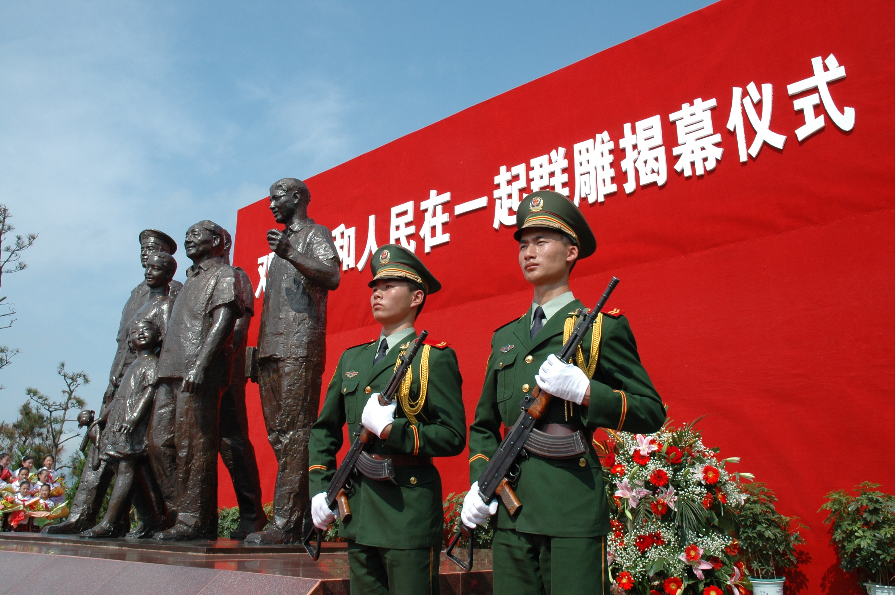 “邓小平与人民在一起”群雕作者为清华大学美术学院教授、中国雕塑家协会常务理事李向群先生,从2006年底开始新建,2007年6月15日群雕揭幕。时任省委书记、省长与伟人的亲属邓林、邓榕等参加了群雕揭幕仪式。